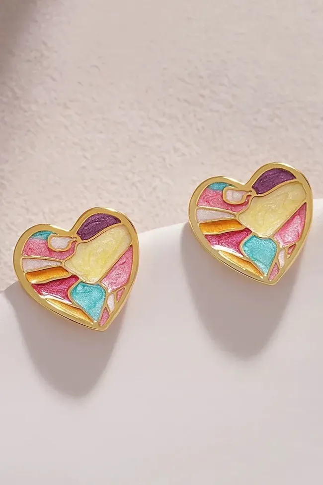 Multicolour Heart Chic Stud Earrings