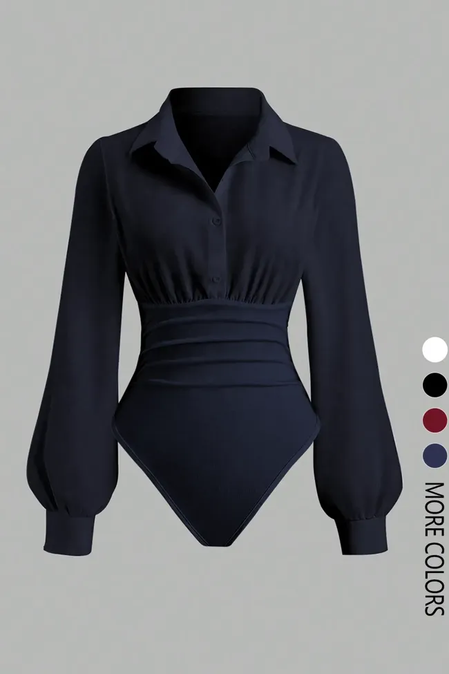 Navy Blue Draped Buttoned Bodysuit