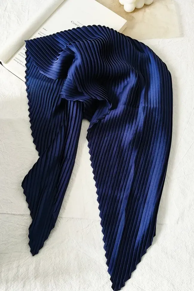 Navy Blue Pleated Solid Scarf