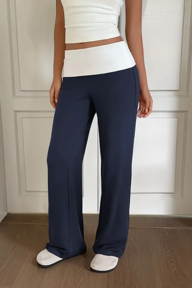 Navy Blue Solid Mid Rise Trousers