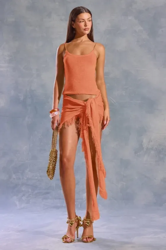 Orange Fringed Sarong Co-Ord Set