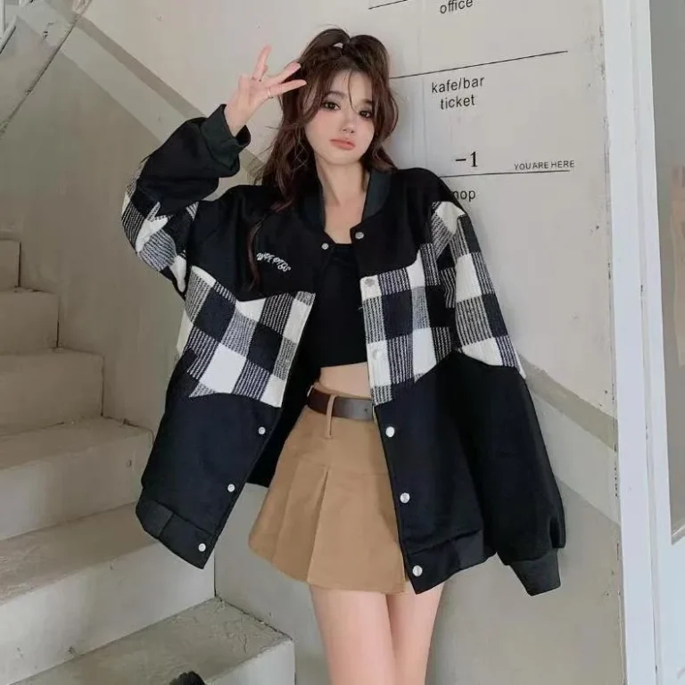 Plaid Patchwork Oversized Jacket