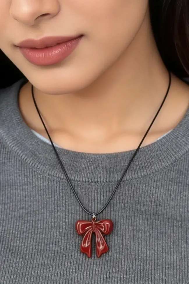 Red Bow Statement Necklace