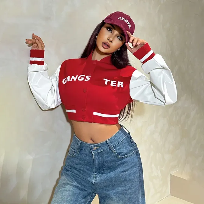 Red Coloblocked Cropped Jacket