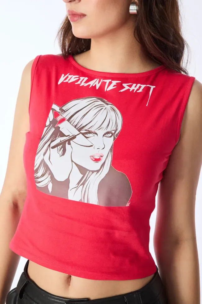 Red Graphic Printed Tank Top