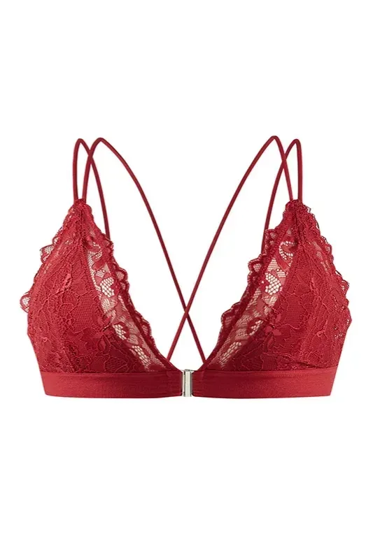 Red Lace V-Neck Bra