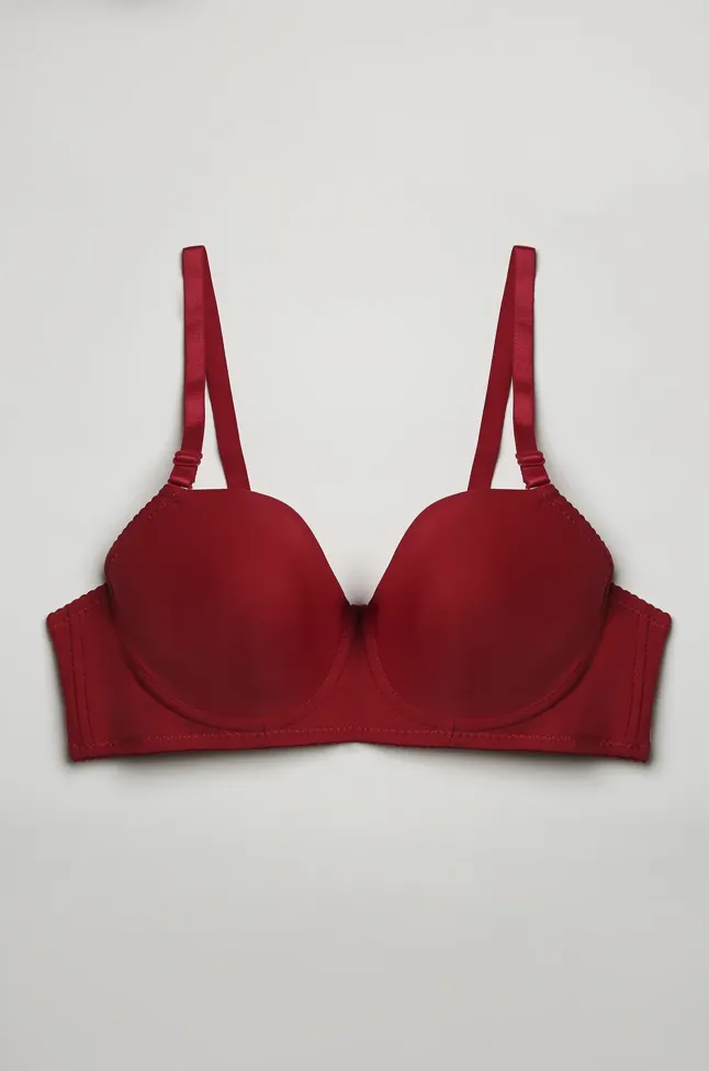 Red Solid Half-Coverage Fitted wired back closure Bra