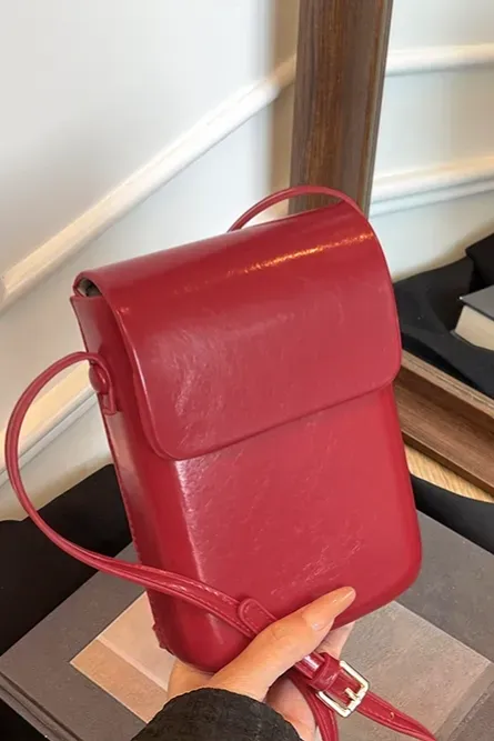Red Solid Pu Shoulder Bag