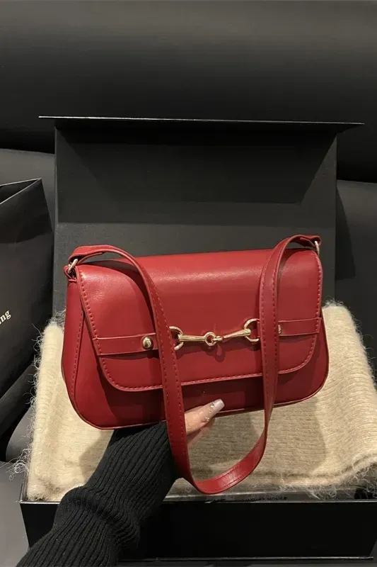 Red Solid Pu Shoulder Bag