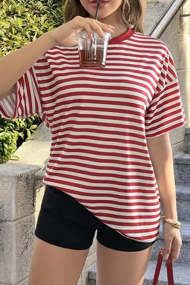Red Striped Crew Neck T-Shirt