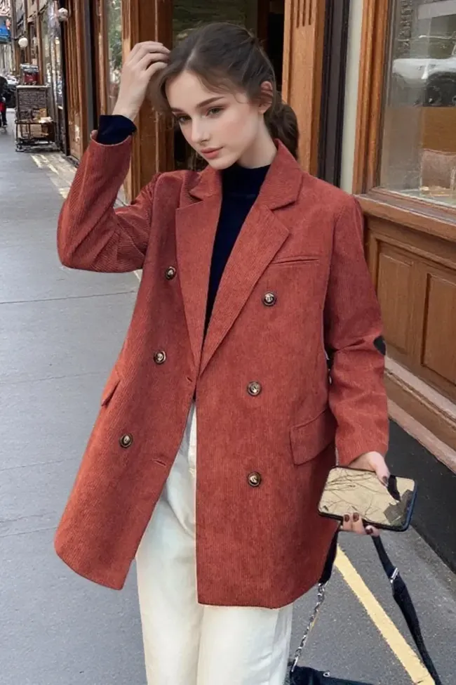 Rust Double-Breasted Lapel Blazer