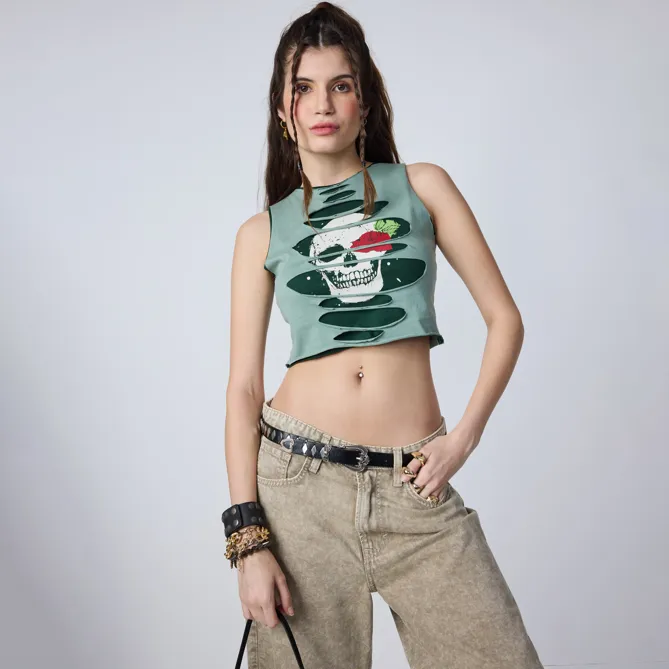 Sage Skelton Printed Crop Tee