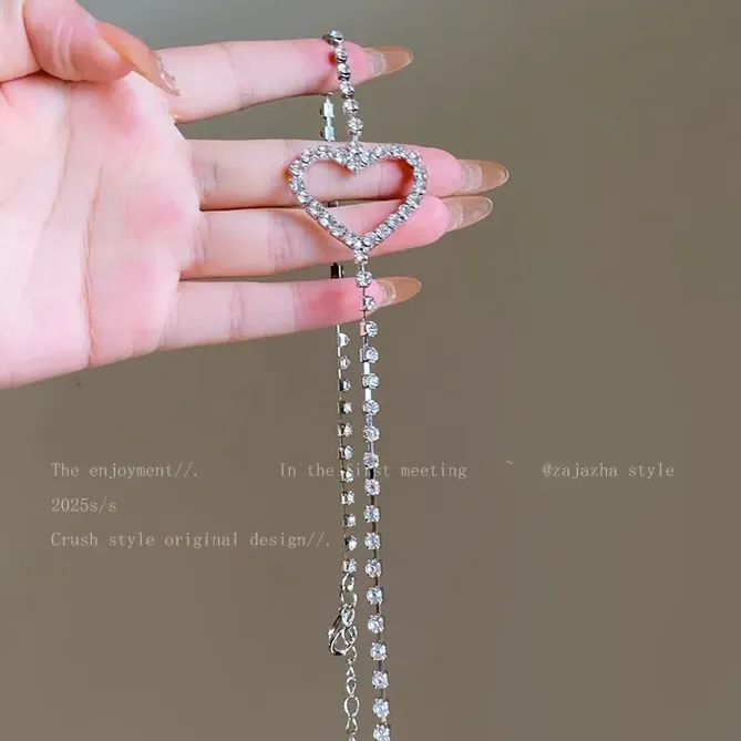 Silver Heart Rhinestone Bra Straps