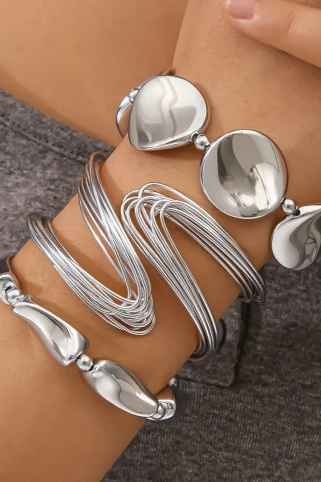 Silver Statement Set Of 3 Bracelets