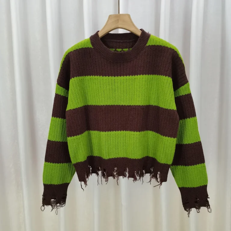 Striped Fringe Hem Striped Sweatshirt