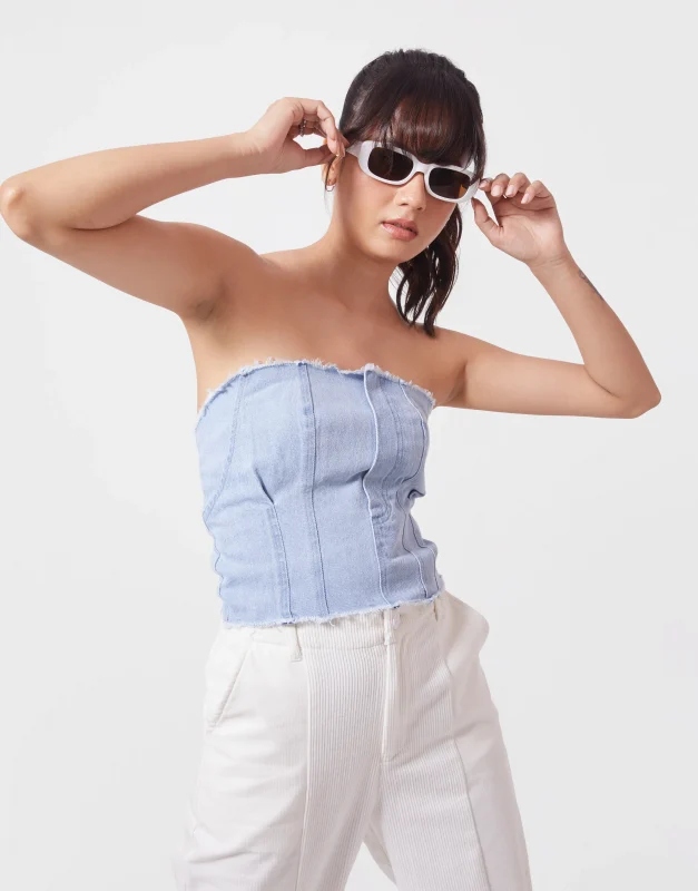 Tube Neck Denim Crop Top