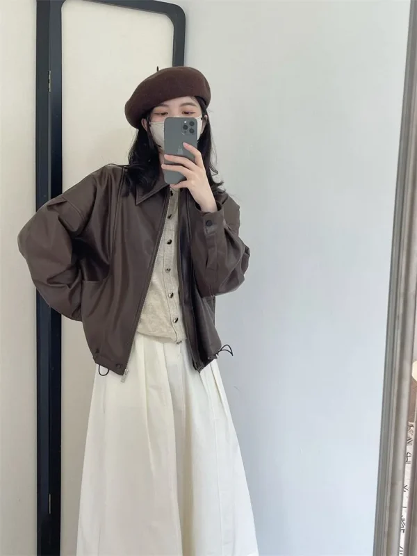 Turn Down Collar Casual Leather Jacket