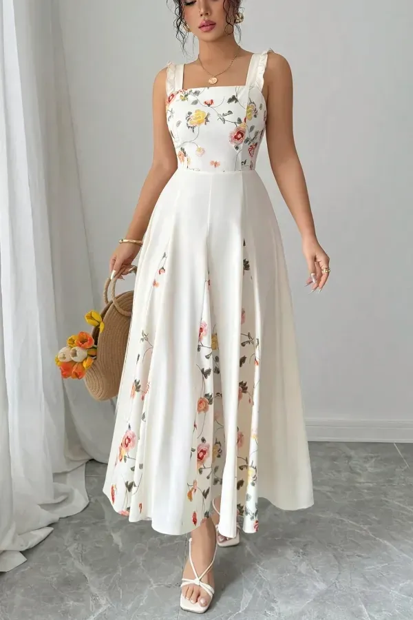 White Floral Square Neck Maxi Dress