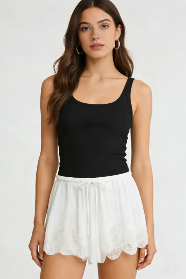 White Lace Mid Rise Shorts