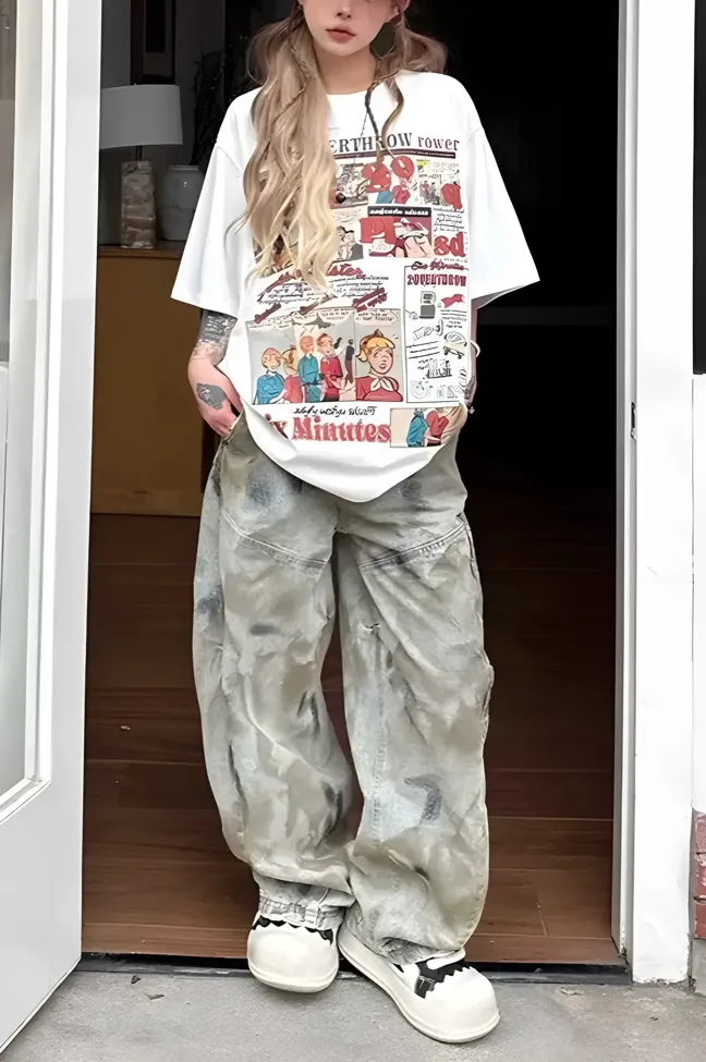 White Oversized Graphic Printed T-Shirt