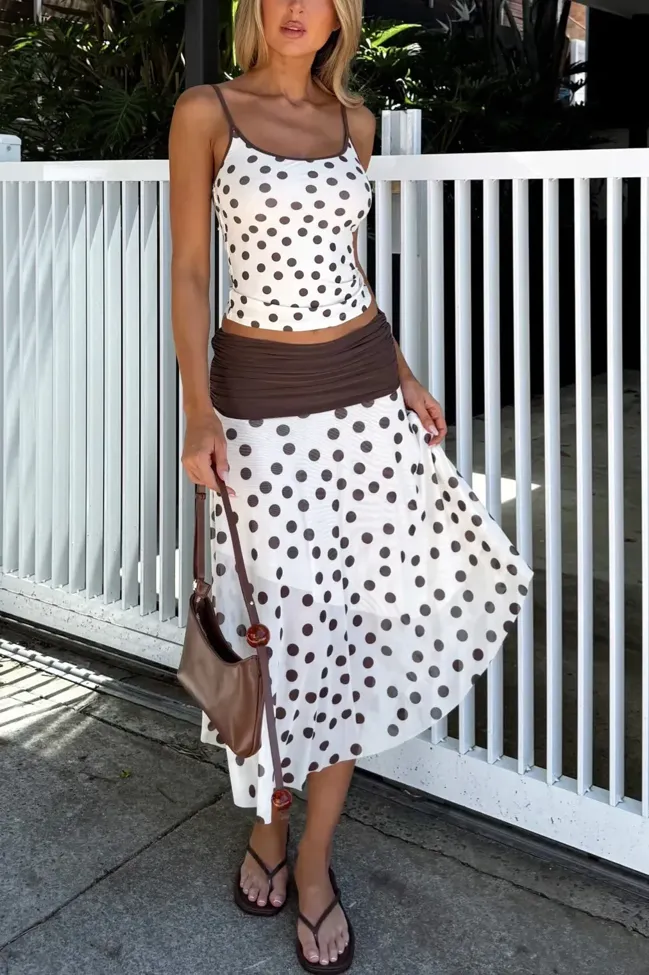 White Polka Dot Midi Co-Ord Set