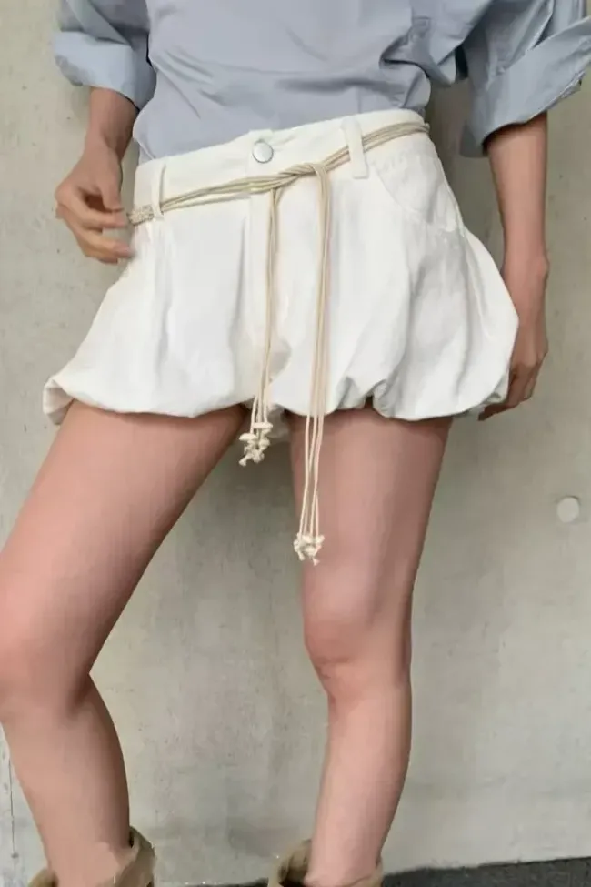 White Solid Mid Rise Denim Skorts