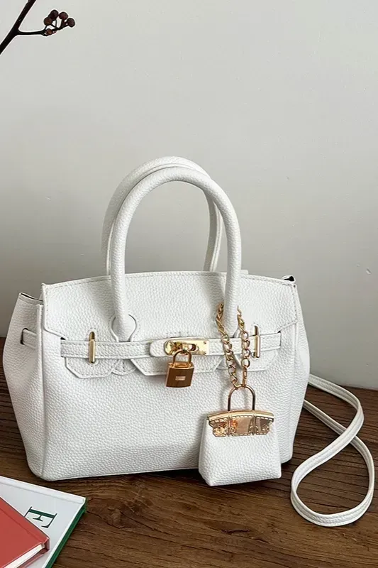 White Solid Pu Charm Satchel Bag