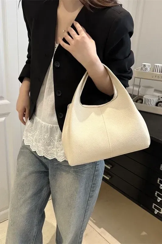 White Solid Pu Hobo Bag