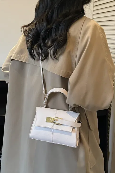 White Solid Pu Satchel Bag