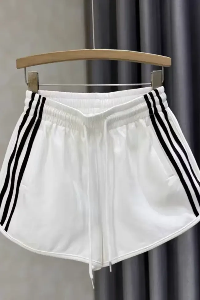 White Striped Mid Rise Shorts
